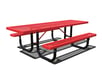 The Accessible Imperial Rectangular Portable Table features centered bench seating and a dual overhang tabletop, creating comfortable wheelchair access on both sides while offering a durable, versatile solution for outdoor gathering spaces.