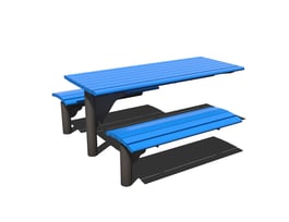 This attractive and durable commercial-grade bench is suitable for any park. Place it on a walking path, sidewalk, or grassy area for visitors to enjoy on any beautiful day. The seat and back are formed with recycled plastic planks in the color of your choice. The horizontal recycled slats are supported with powder coated 3" square tubing legs for years of use. You can choose in-ground or surface mounting.