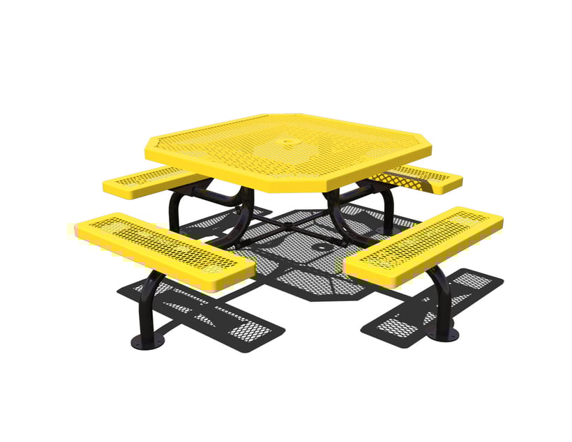 Consider adding the Regal Octagon Web Table to your outdoor space for a distinctive look. This commercial-grade table is designed for high traffic use. It's constructed with a 2-3/8" powder coated frame and has textured polyethylene table top and seats. Choose from 3 or 4 seats.