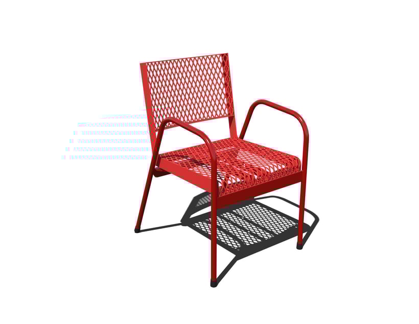 A heavy-duty steel stacking patio chair offers durability, functionality, and ease of storage, making it a practical choice for outdoor seating in commercial venues, such as restaurants, cafes, or event spaces.